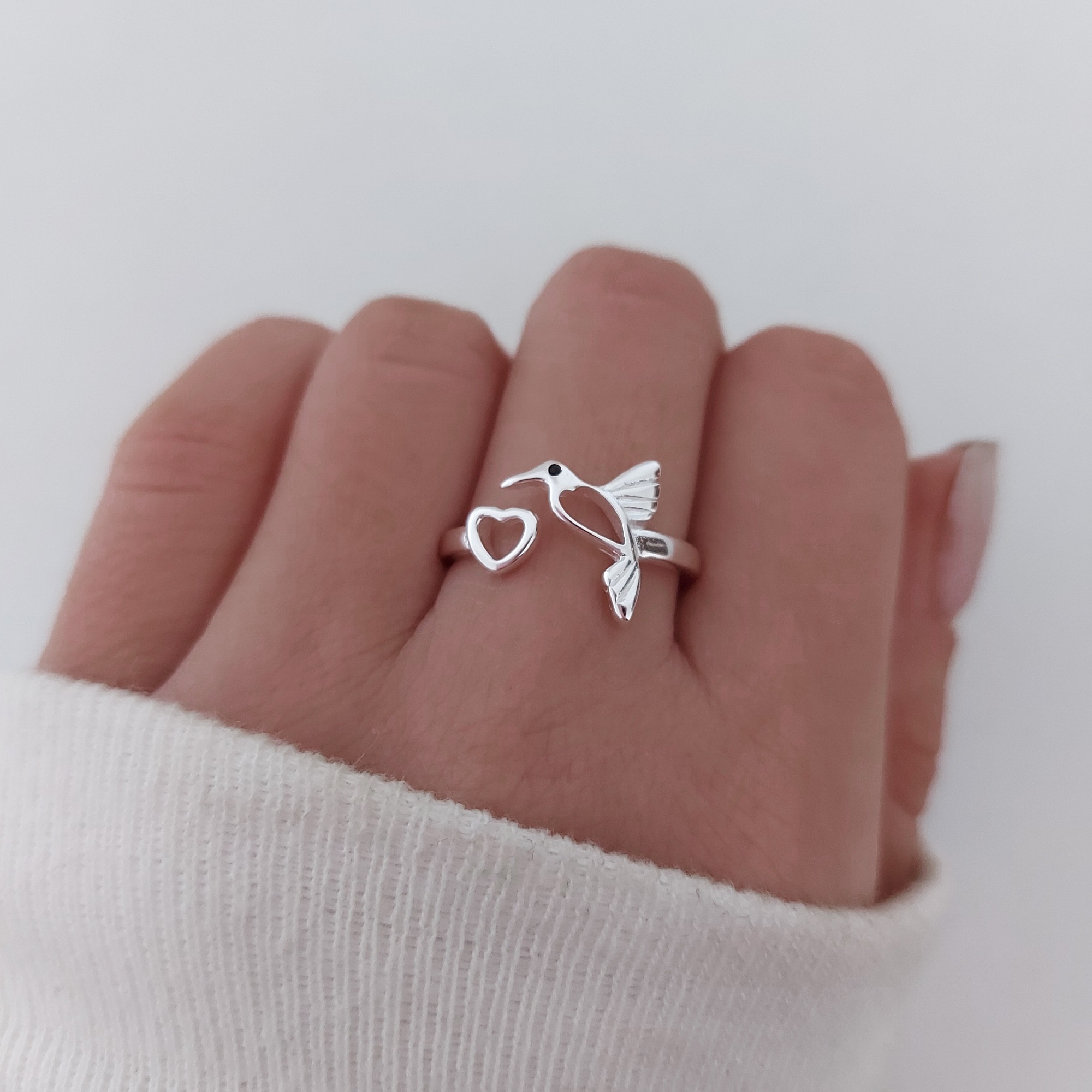Anillo colibri corazon. Plata 925.