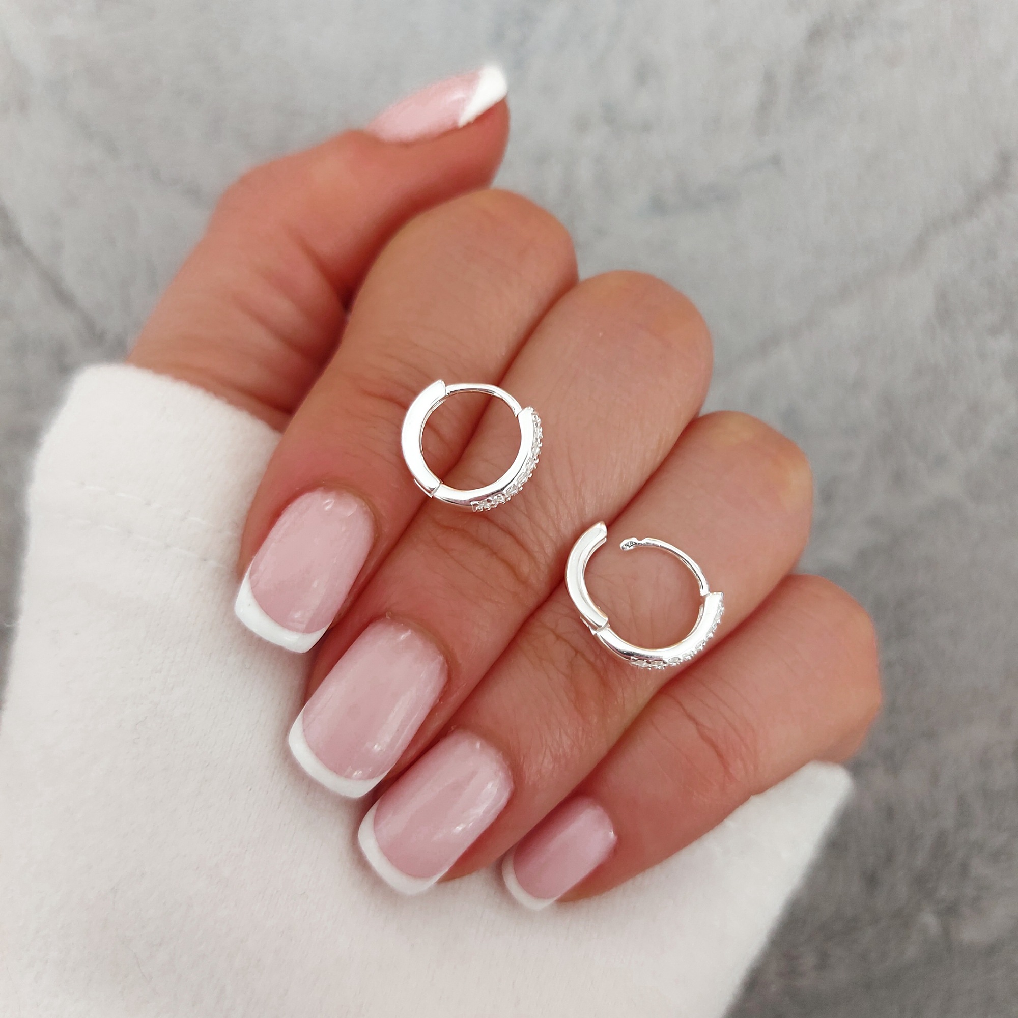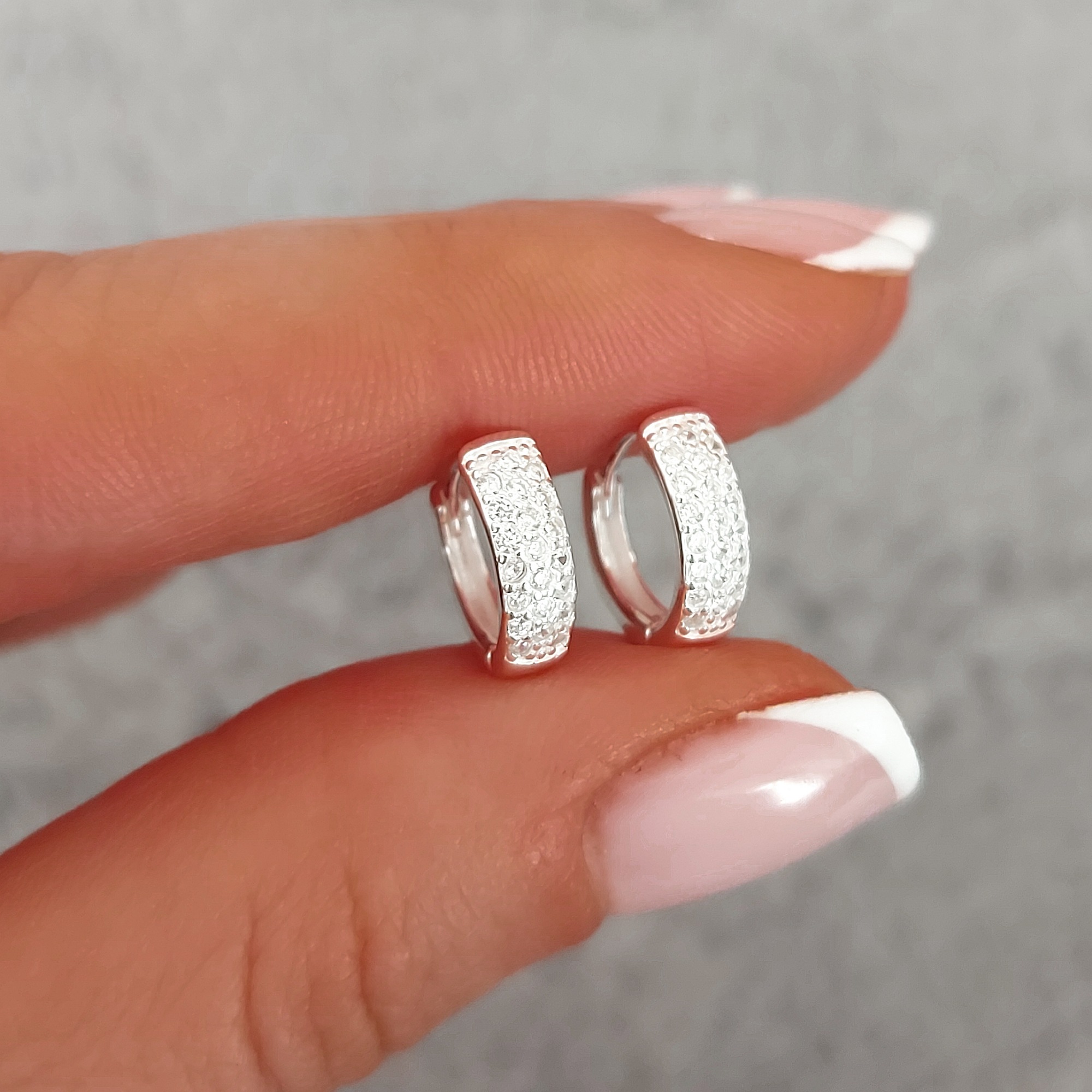 Argollitas shine triple linea. Cierre huggie. Por par.