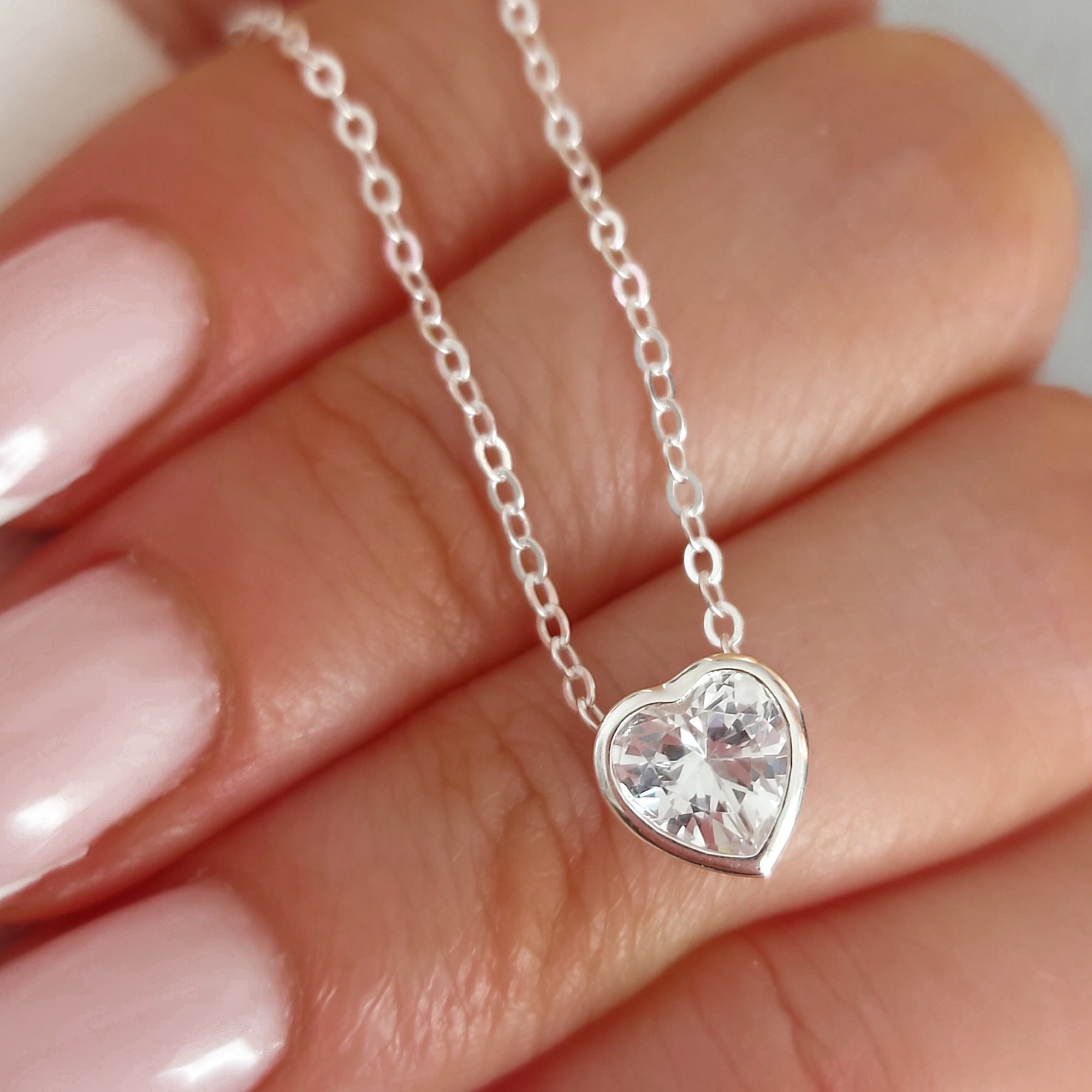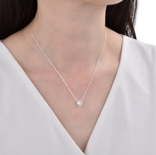 Collar corazon cubic rosa. Plata 925 y cubic