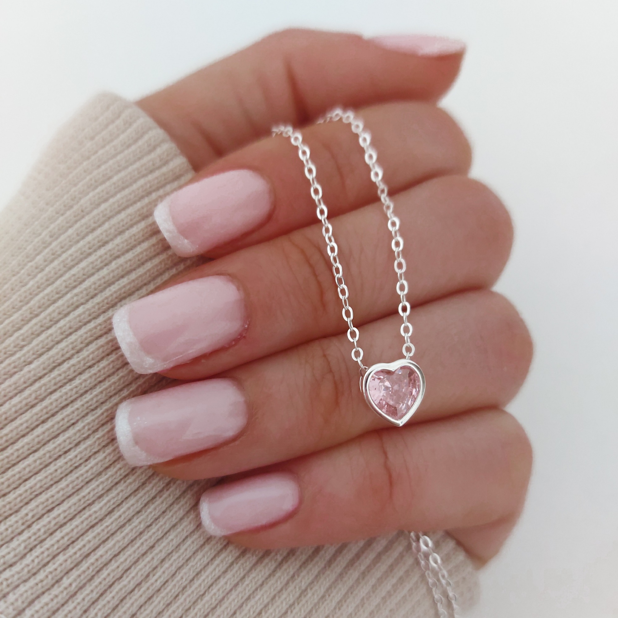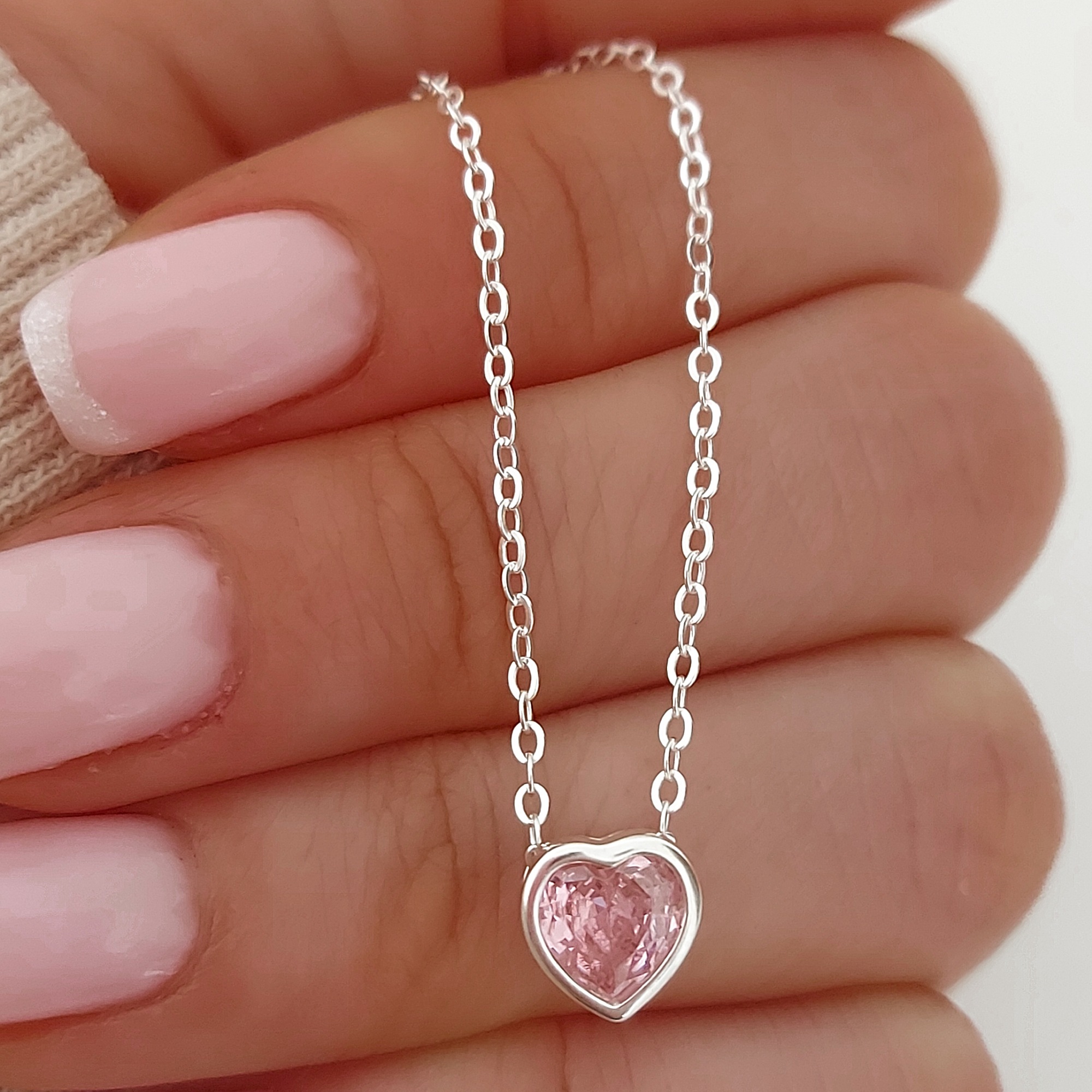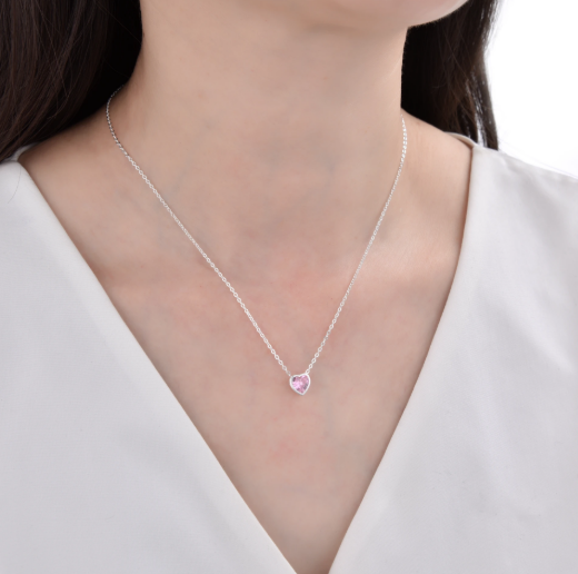 Collar corazon cubic rosa. Plata 925 y cubic
