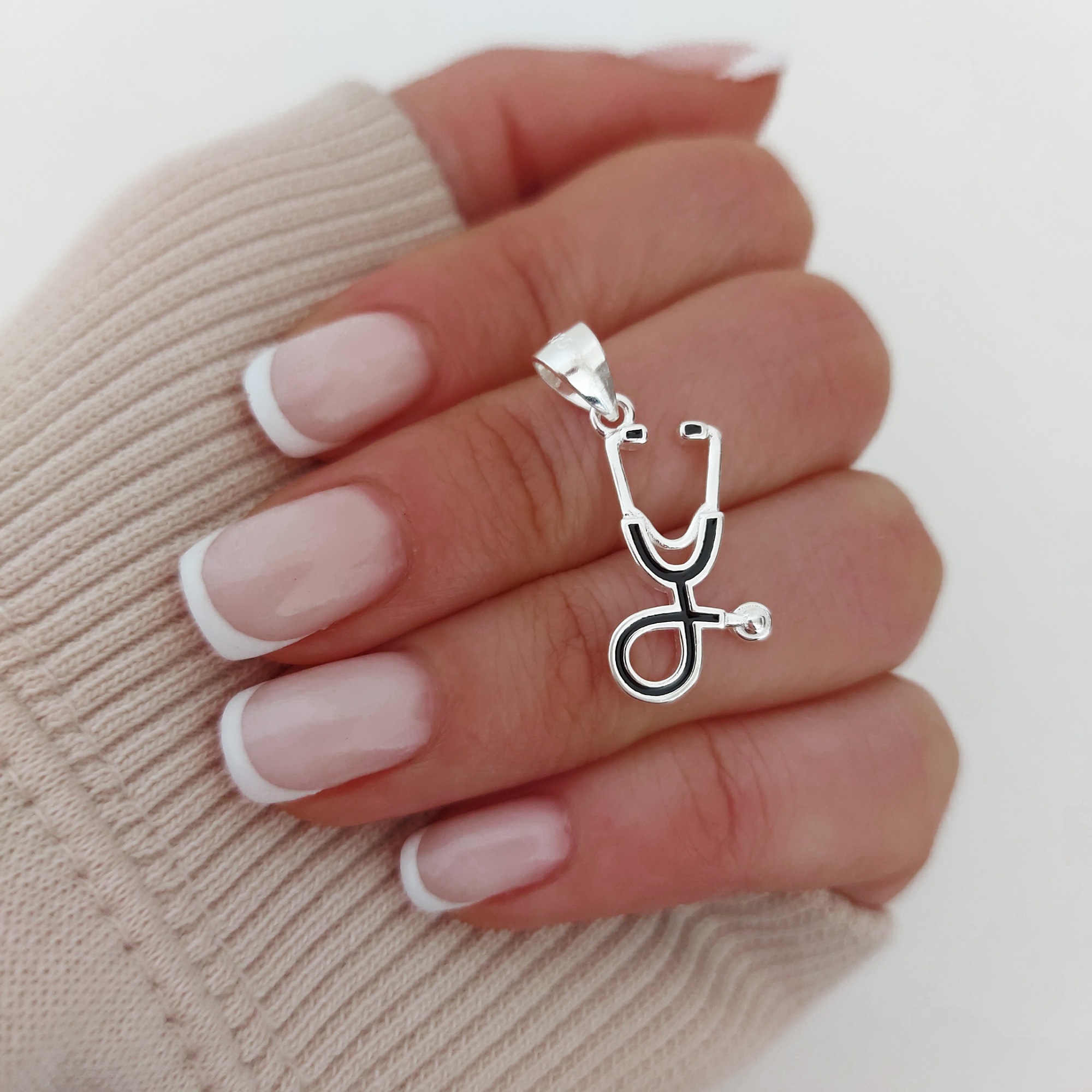 Dije estetoscopio esmaltado. Plata 925.