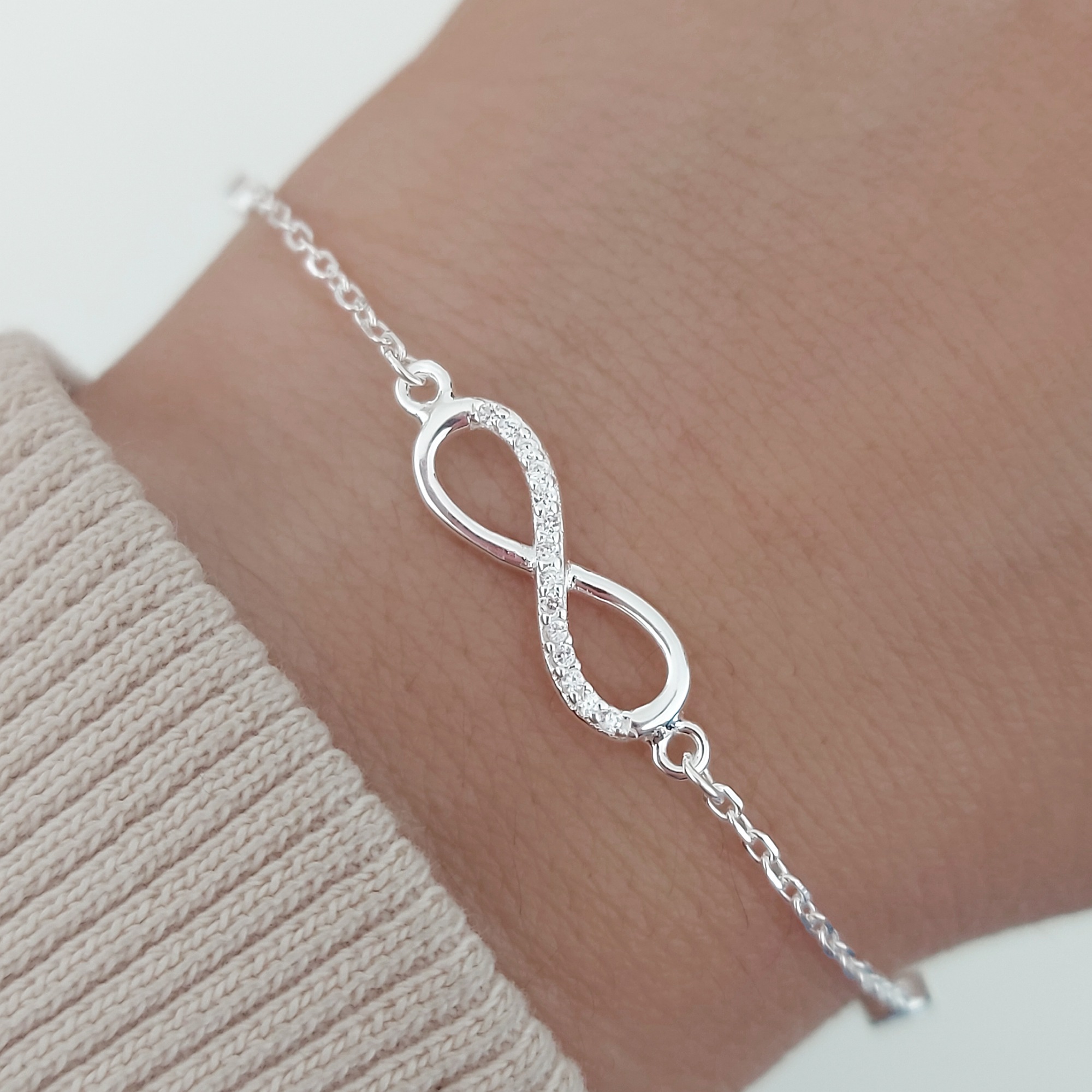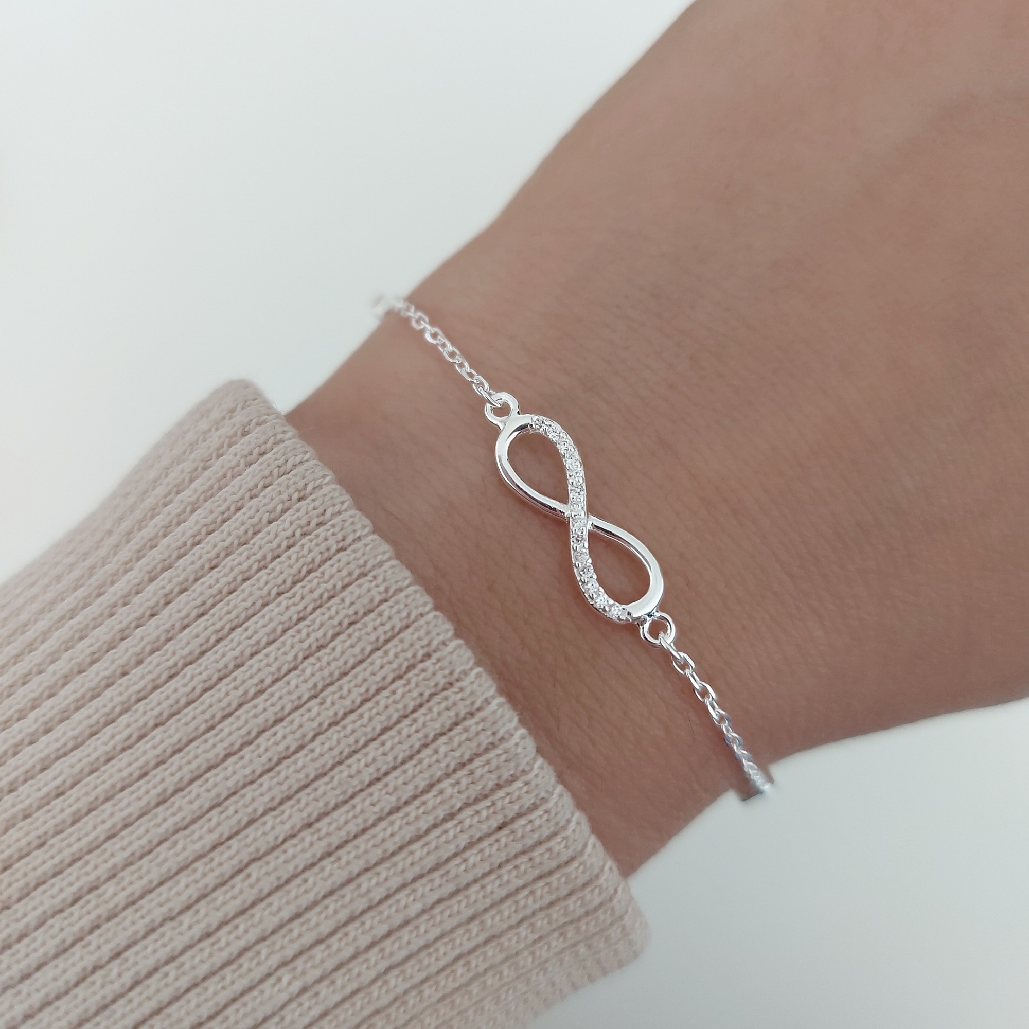 Pulsera infinito cubics fina. Plata 925 y micropave (pequeños cubics engarzados)