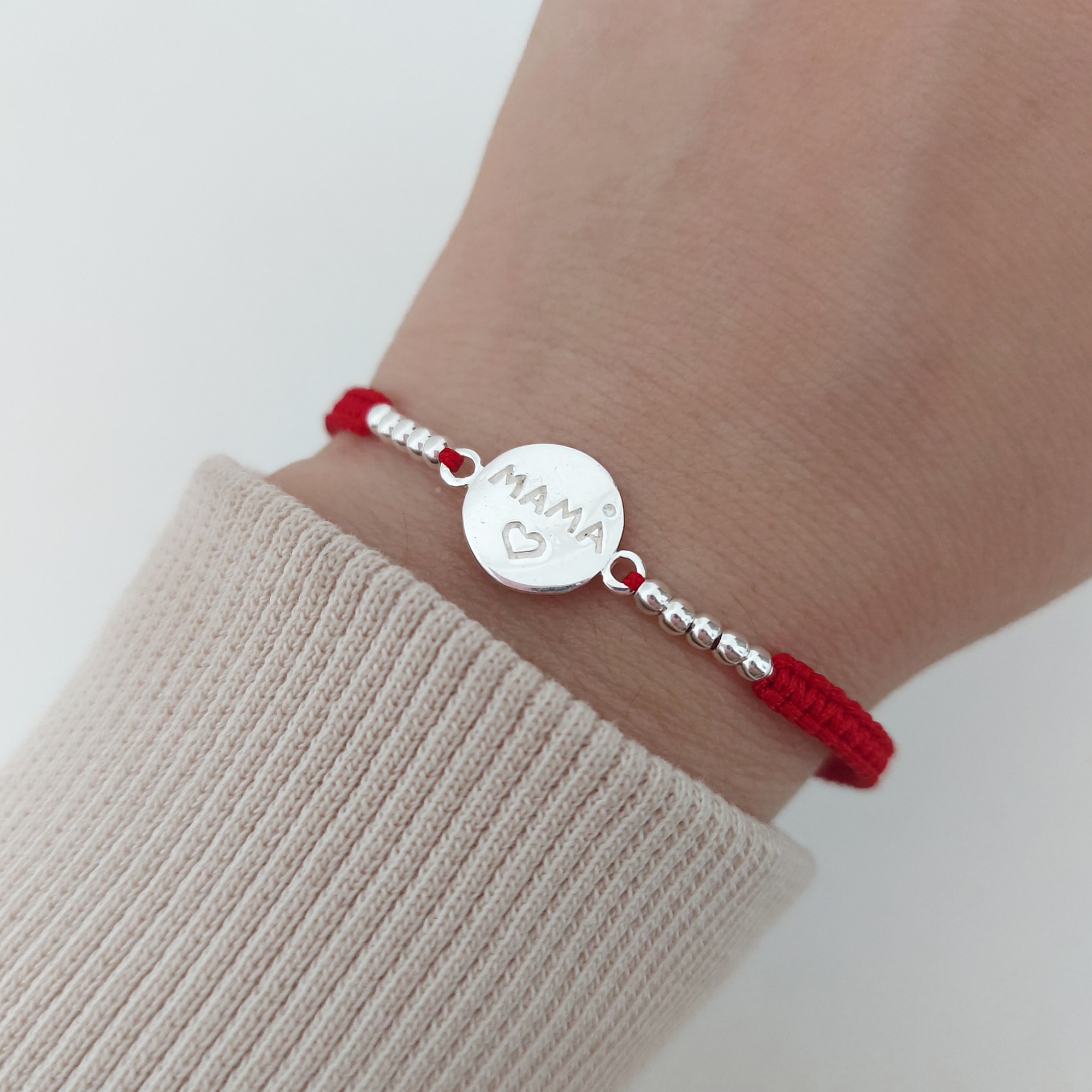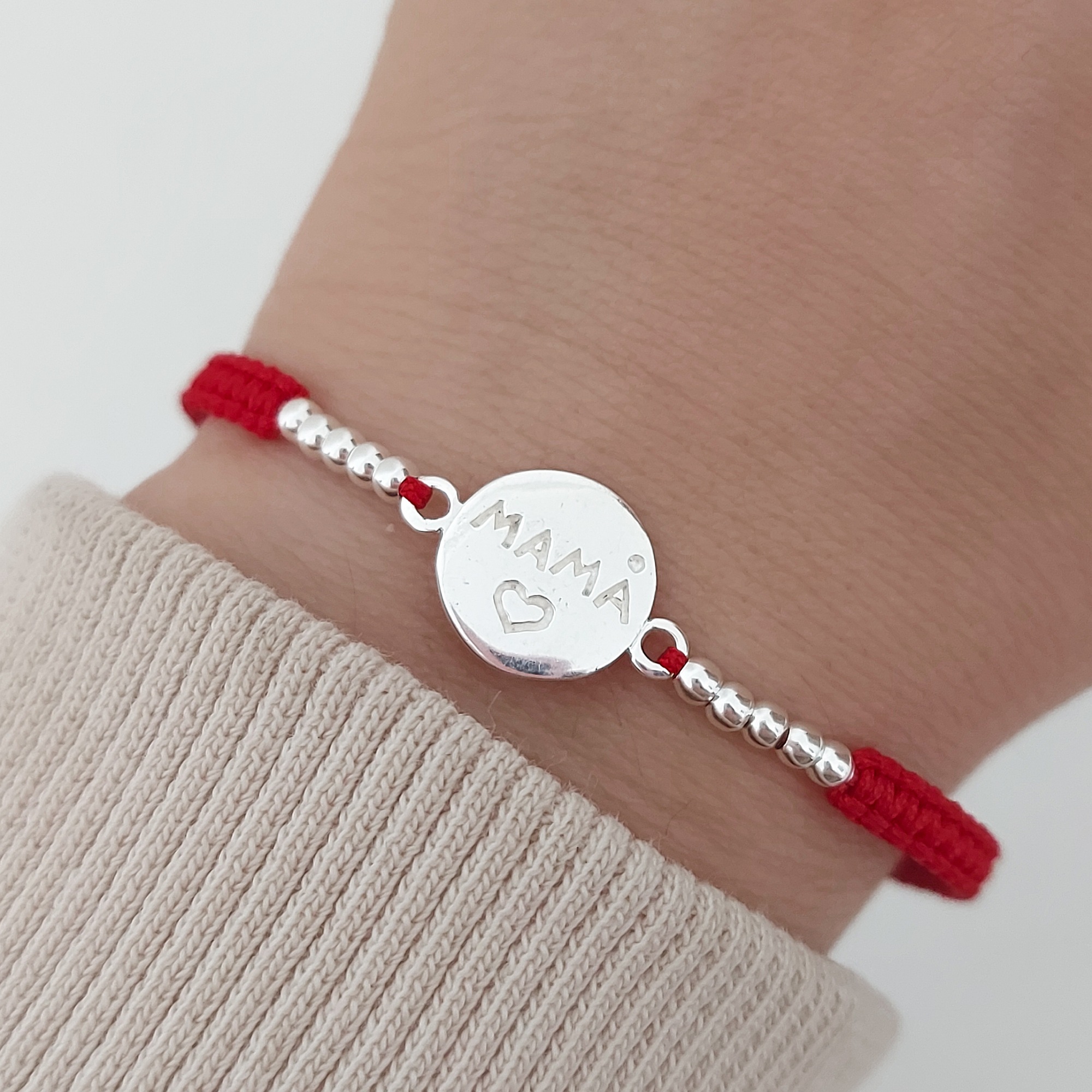 Pulsera mamá, con terminales y bolitas de plata 925.