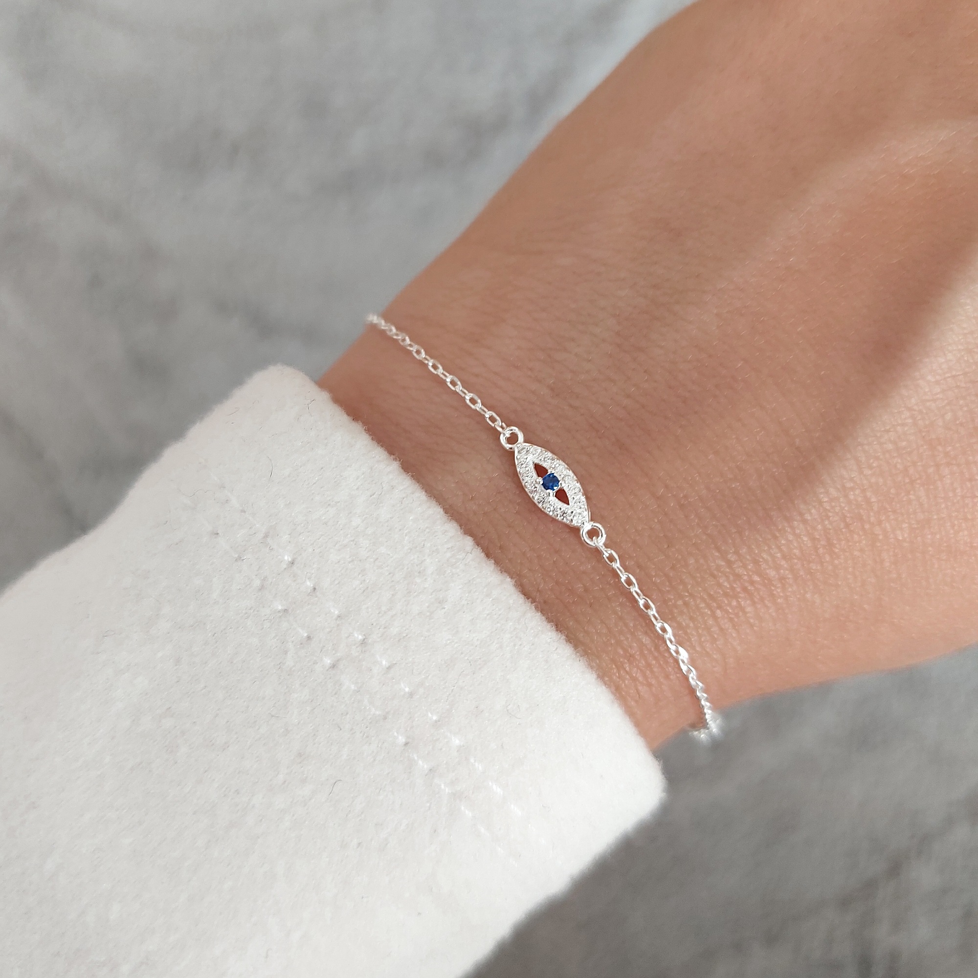 Pulsera mini ojitos. Plata 925, micropave (pequeños cubics engarzados)