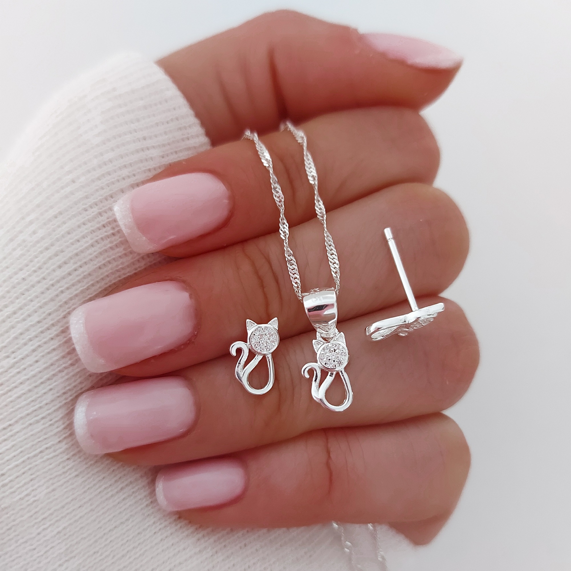 Set completo gatito miniatura. Plata 925, micropave (pequeños cubics engarzados).
